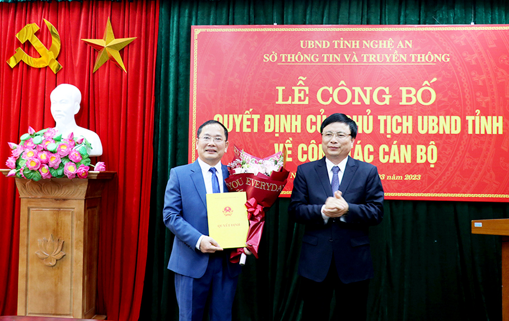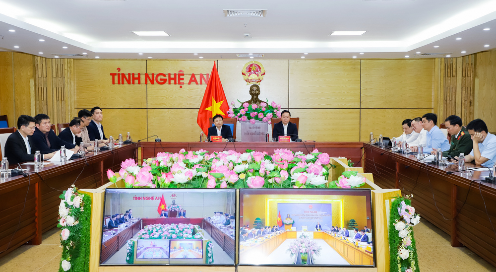 | Các đồng chí chủ trì tại điểm cầu Nghệ An. |