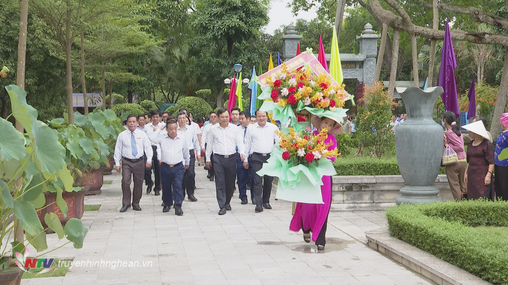 Thay mặt cho Đảng bộ, chính quyền, các lực lượng vũ trang và nhân dân tỉnh Nghệ An, Phó bí thư tỉnh uỷ, Chủ tịch UBND tỉnh Nguyễn Đức Trung đặt vòng hoa tươi thắm mang dòng chữ “Đoàn công tác đặc biệt tỉnh Nghệ An đời đời nhớ ơn các anh hùng liệt sỹ”.