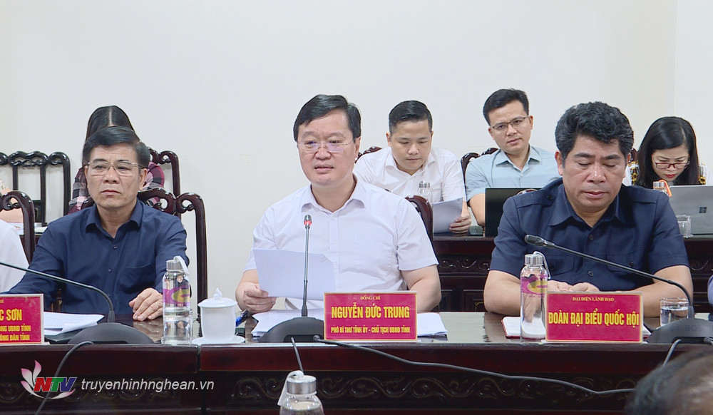 | Đồng chí Nguyễn Đức Trung- Phó Bí thư Tỉnh ủy, Chủ tịch UBND tỉnh chủ trì tại điểm cầu Nghệ An. |
