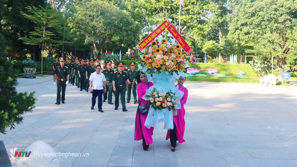 Trong không khí trang nghiêm, các đại biểu thành kính dâng hoa, dâng hương, tỏ lòng thành kính, tri ân sâu sắc tới những đóng góp to lớn của đồng chí Nguyễn Thị Minh Khai…