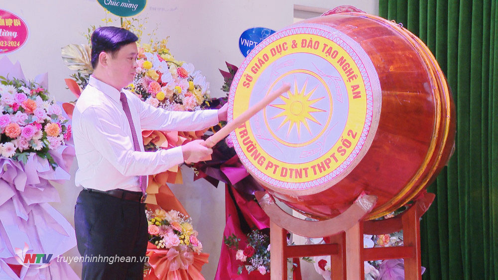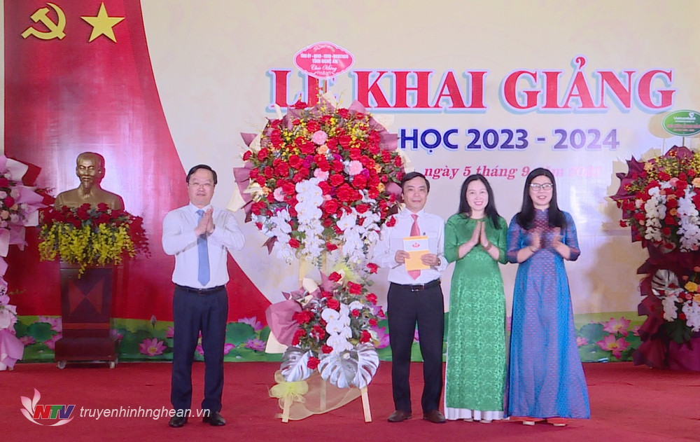 Tại buổi lễ, Nguyễn Thị Thu Hường - Uỷ viên BTV, Trưởng Ban Tuyên giáo Tỉnh uỷ đã tặng hoa chúc mừng thầy cô giáo và các em học sinh nhân ngày khai giảng năm học mới.