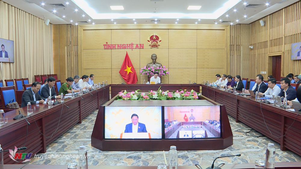 | Đồng chí Nguyễn Đức Trung – Phó Bí thư Tỉnh ủy, Chủ tịch UBND tỉnh chủ trì tại điểm cầu Nghệ An. |