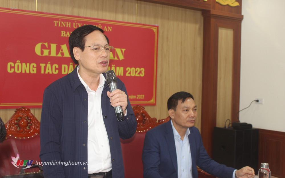 Bí thư Huyện uỷ Nghi Lộc Dương Đình Chỉnh phát biểu tại buổi sinh hoạt.