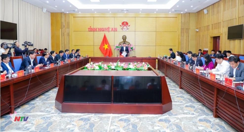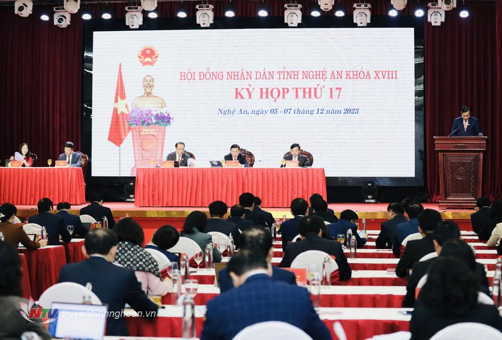 Các đồng chí: Thái Thanh Quý - Ủy viên Ban Chấp hành Trung ương Đảng, Bí thư Tỉnh ủy, Chủ tịch HĐND tỉnh, Trưởng Đoàn ĐBQH tỉnh; Nguyễn Nam Đình - Ủy viên Ban Thường vụ Tỉnh ủy, Phó Chủ tịch Thường trực HĐND tỉnh; Nguyễn Như Khôi - Phó Chủ tịch HĐND tỉnh chủ tọa kỳ họp.