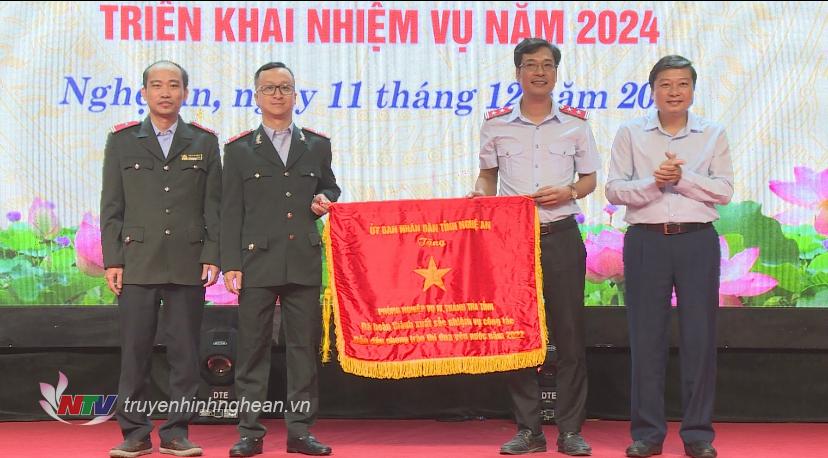 | Lãnh đạo huyện ủy Quỳnh Lưu trao Huy hiệu 75 năm tuổi đảng cho đảng viên Hồ Hữu Mão. |