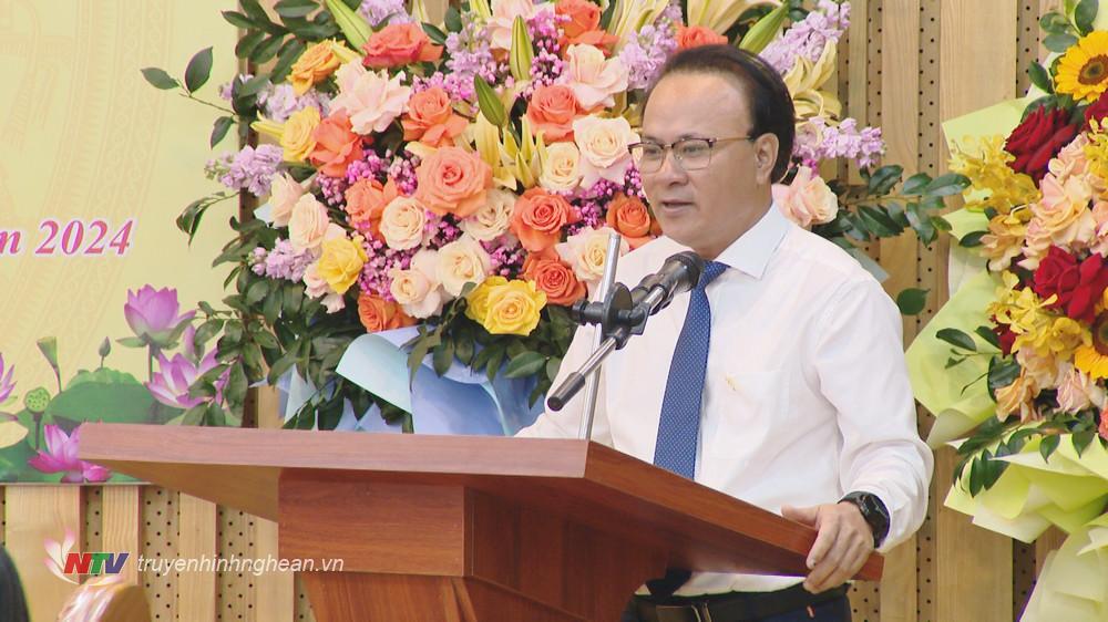 | Chủ tịch UBND tỉnh Nguyễn Đức Trung phát biểu chúc mừng. |