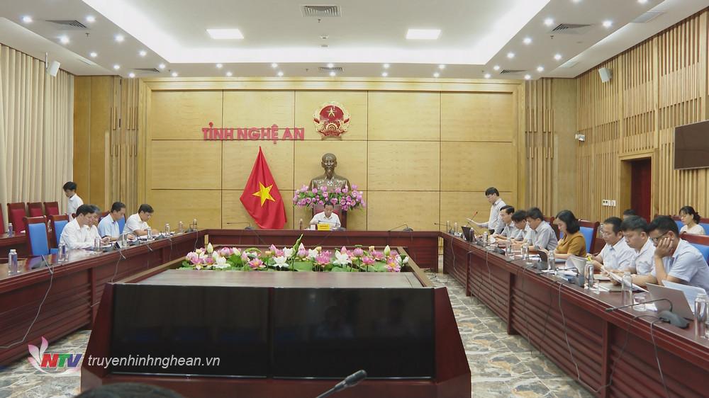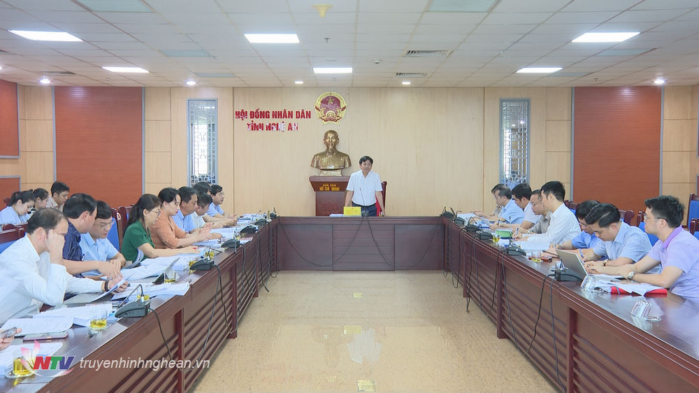 | Phó Chủ tịch Thường trực UBND tỉnh Lê Hồng Vinh phát biểu kết luận cuộc họp. |