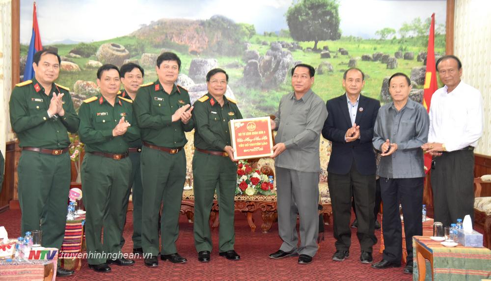 | Lãnh đạo huyện Anh Sơn trao hỗ trợ thôn 3 xây dựng nhà văn hóa. |