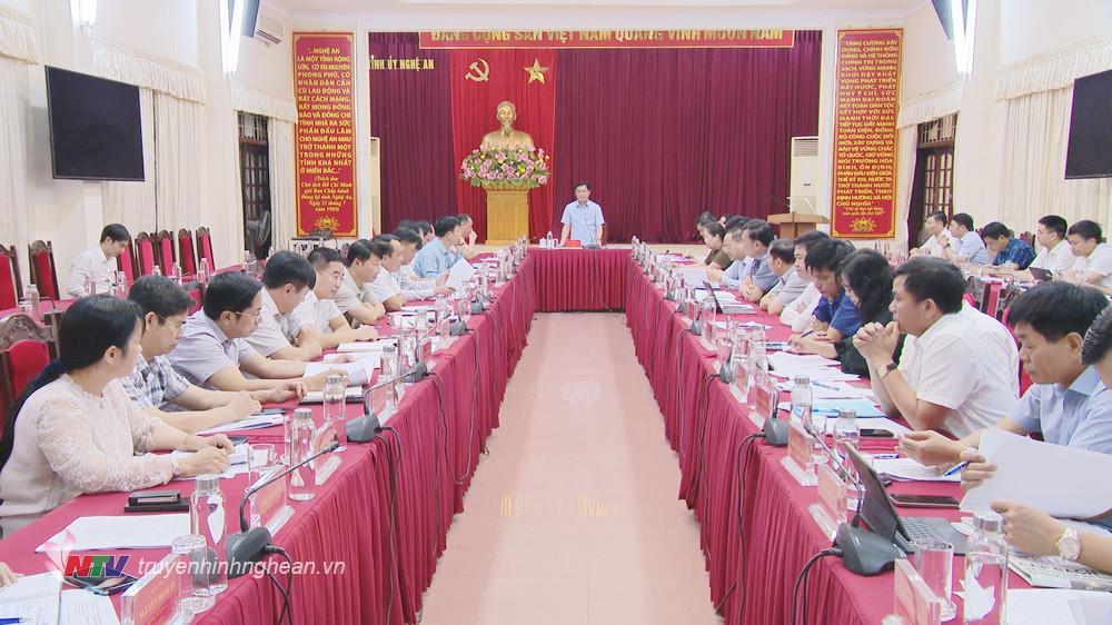 | Chủ tịch UBND tỉnh Nghệ An Nguyễn Đức Trung phát biểu tại buổi làm việc. |