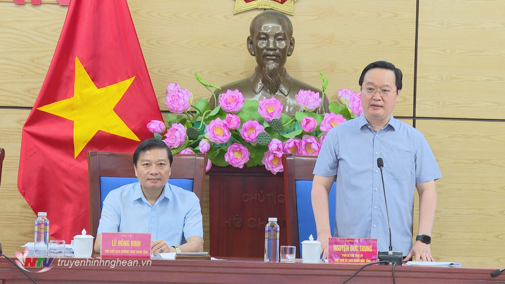 | Chủ tịch UBND tỉnh Nguyễn Đức Trung phát biểu tại cuộc làm việc. |