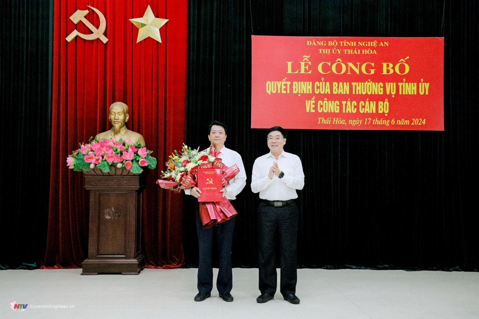 Thừa uỷ quyền của Chủ tịch UBND tỉnh, Phó Chủ tịch Thường trực UBND tỉnh Lê Hồng Vinh đã trao Quyết định, tặng hoa chúc mừng ông Nguyễn Tiến Dũng - Phó Bí thư Huyện ủy, Chủ tịch UBND huyện Nghi Lộc được điều động, bổ nhiệm chức vụ Phó Giám đốc Sở Tài chính; Các ông: Nguyễn Văn Chiến - Phó Chủ tịch UBND huyện Thanh Chương và ông Hoàng Thanh Linh - Trưởng phòng nghiệp vụ 2, Thanh tra tỉnh được bổ nhiệm giữ chức Phó Chánh Thanh tra tỉnh; Ông Lê Anh Tuấn - Phó Giám đốc Vườn Quốc gia Pù Mát được bổ nhiệm giữ chức vụ Giám đốc Vườn Quốc gia Pù Mát; Ông Cao Nguyên Hùng - Phó trưởng phòng Tổng hợp, Văn phòng Tỉnh ủy được bổ nhiệm giữ chức phó Giám đốc Trung tâm xúc tiến đầu tư, thương mại & du lịch tỉnh Nghệ An.