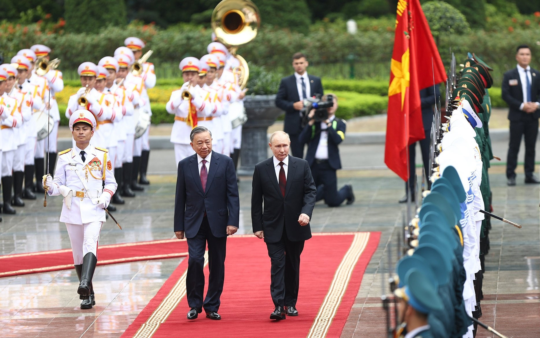 Ngày 20/6, tại Phủ Chủ tịch, ngay sau lễ đón chính thức, Chủ tịch nước Tô Lâm và Tổng thống Liên bang Nga Vladimir Putin dẫn đầu đoàn đại biểu cấp cao hai nước tiến hành hội đàm; đánh giá kết quả hợp tác giữa hai nước thời gian qua và đề xuất các phương hướng hợp tác thời gian tới.
