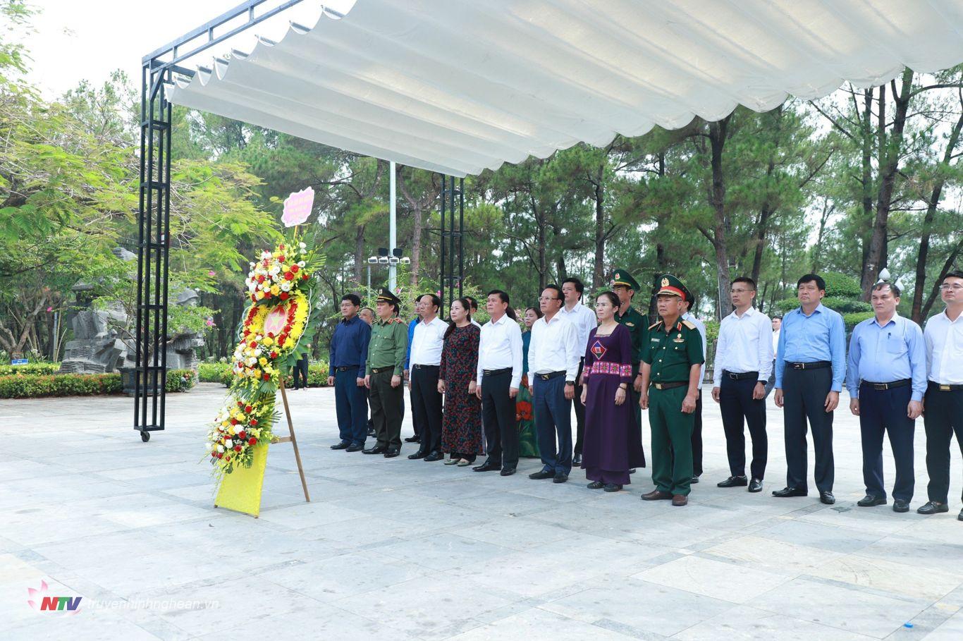 | Đoàn đại biểu dâng hoa, dâng hương tưởng niệm các Anh hùng Liệt sĩ tại Nghĩa trang liệt sĩ Quốc gia Trường Sơn |