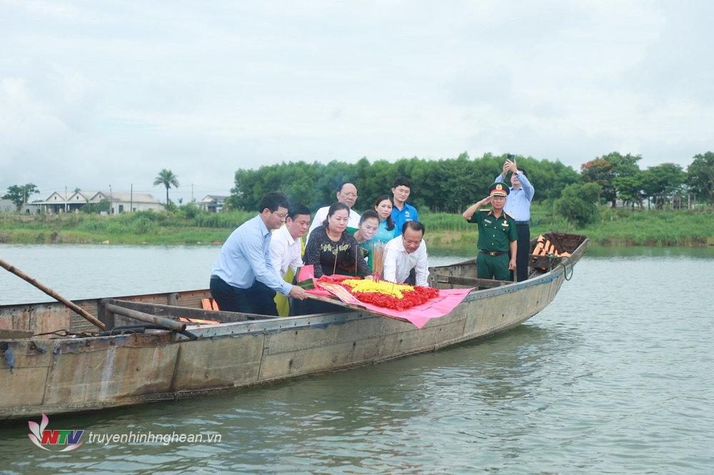 | Thiếu tướng Bùi Quang Thanh, Ủy viên Ban Thường vụ Tỉnh ủy, Giám đốc Công an tỉnh và Đoàn đại biểu dâng hương và thả hoa đăng tưởng nhớ các Anh hùng liệt sĩ bên bờ sông Thạch Hãn. |