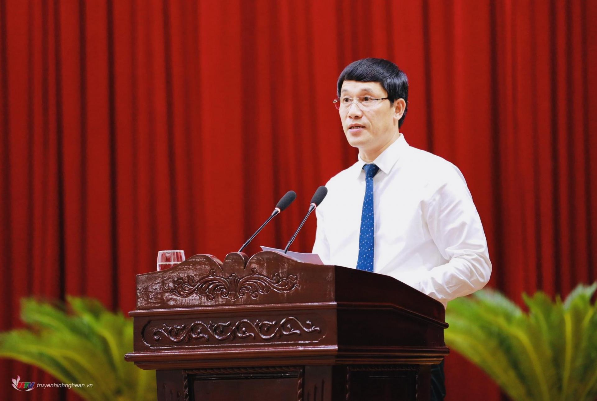 | Đồng chí Hoàng Nghĩa Hiếu - Phó Bí thư Tỉnh uỷ phát biểu tại hội nghị. |