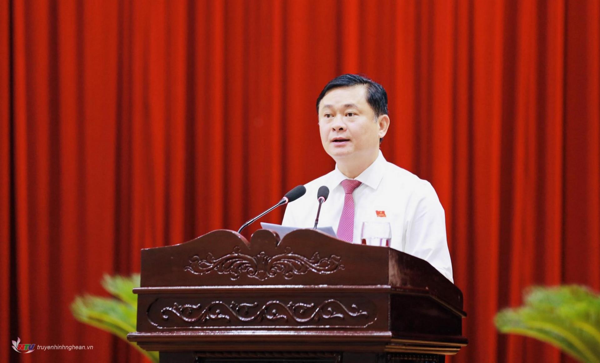 | Chủ tịch UBND thị xã Hoàng Mai Nguyễn Hữu An phát biểu tại phiên thảo luận tổ. |