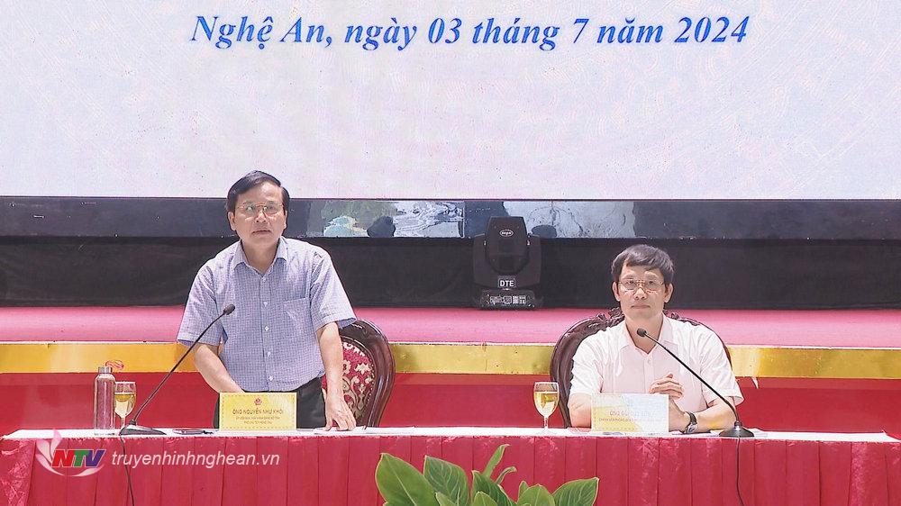| Phó Chủ tịch HĐND tỉnh Nguyễn Như Khôi phát biểu tại buổi làm việc. |
