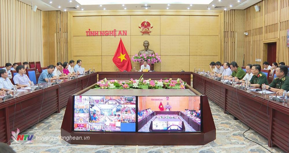 | Phó Chủ tịch UBND tỉnh Nguyễn Văn Đệ cùng đoàn kiểm tra công tác phòng chống bão tại huyện Tân Kỳ. |