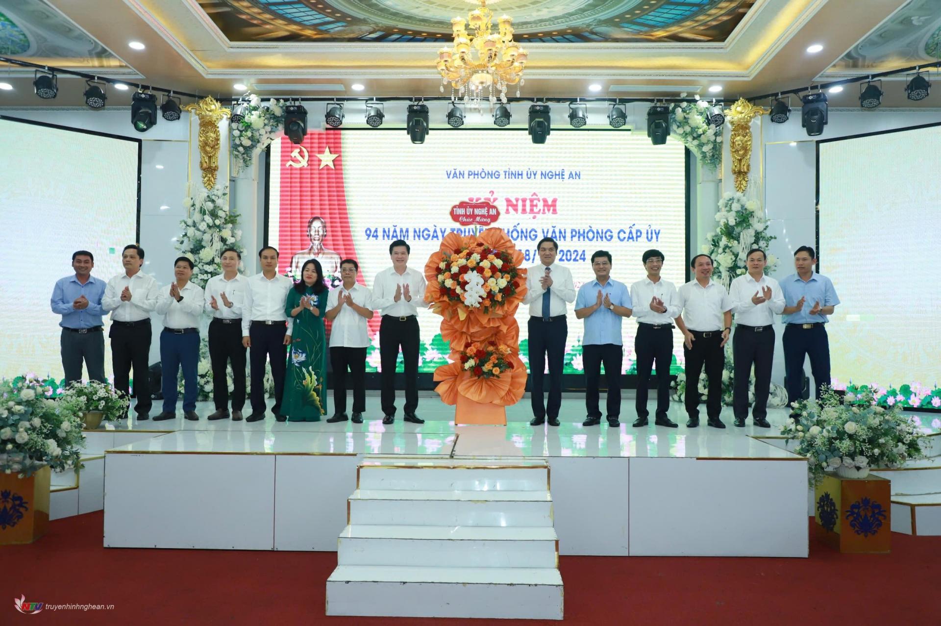 | Phó Chủ tịch UBND tỉnh Nguyễn Văn Đệ trao Quyết định và tặng hoa chúc mừng các đồng chí được điều động, bổ nhiệm giữ chức vụ mới |