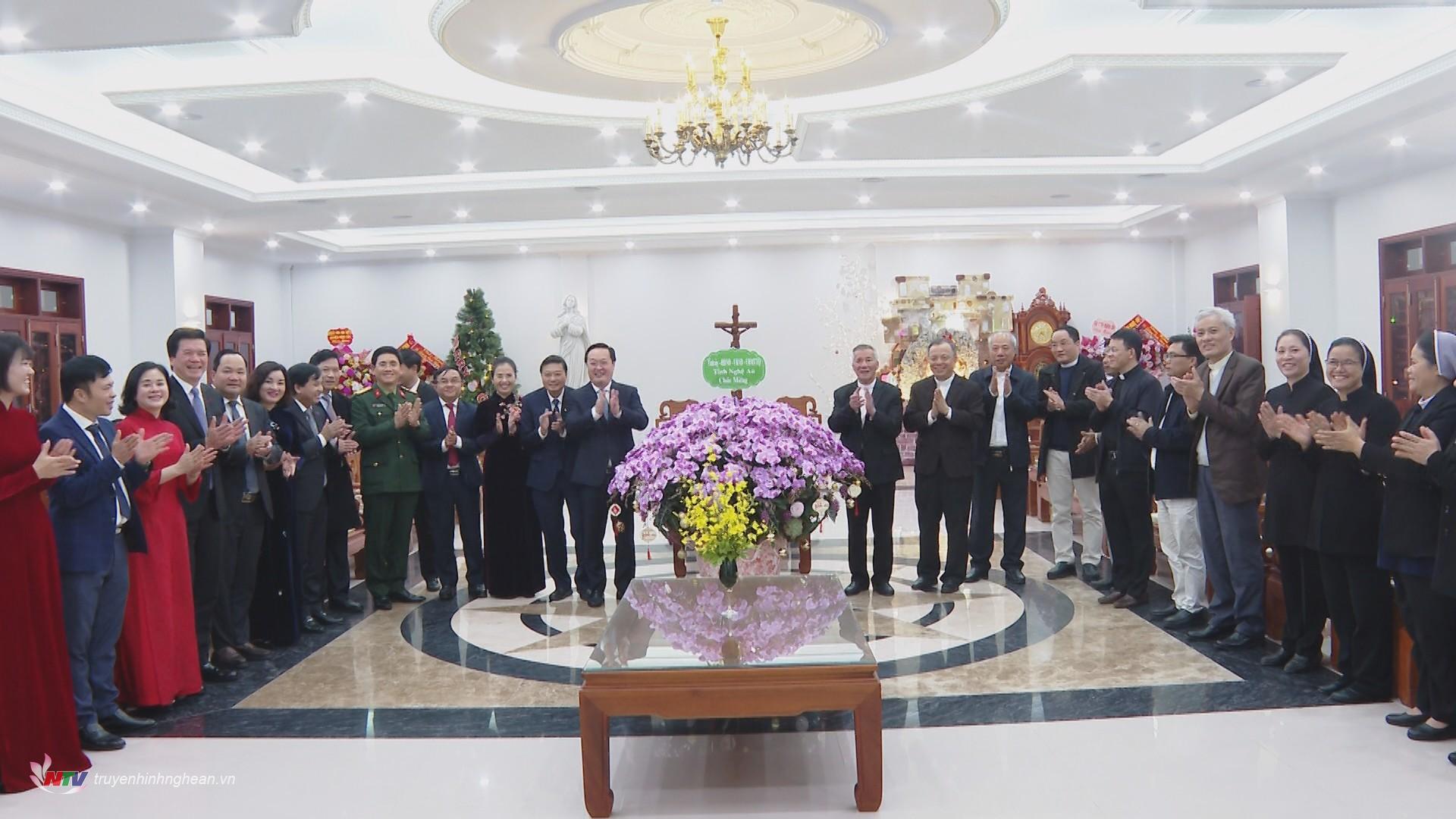 Tiếp đó, đoàn đã đến đặt vòng hoa trước Đài tưởng niệm tại Nghĩa trang liệt sĩ thành phố Vinh.