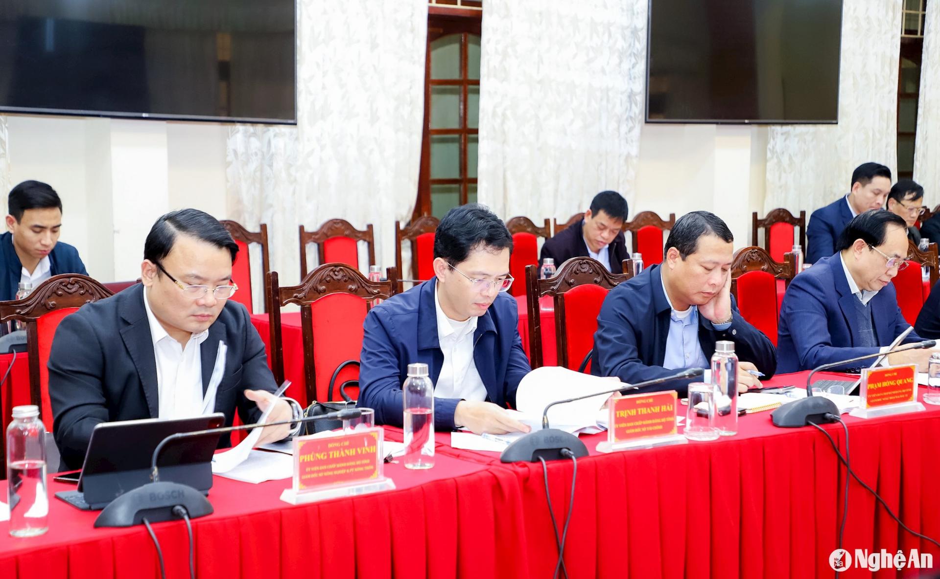 | Các đồng chí trong Thường trực Tỉnh ủy, Ban Thường vụ Tỉnh ủy tham dự phiên họp. |
