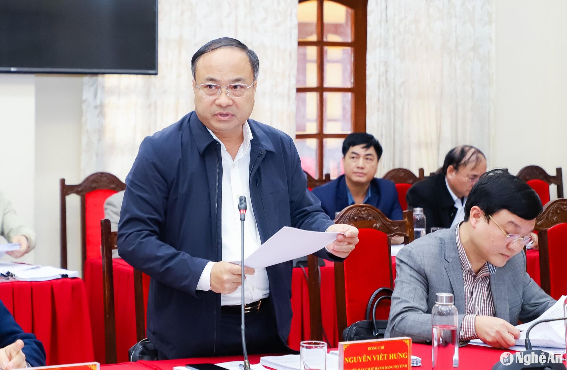 | Giám đốc Sở Nội vụ Nguyễn Viết Hưng trình bày dự thảo phương án sắp xếp, tinh giảm tổ chức bộ máy khối chính quyền tỉnh. |