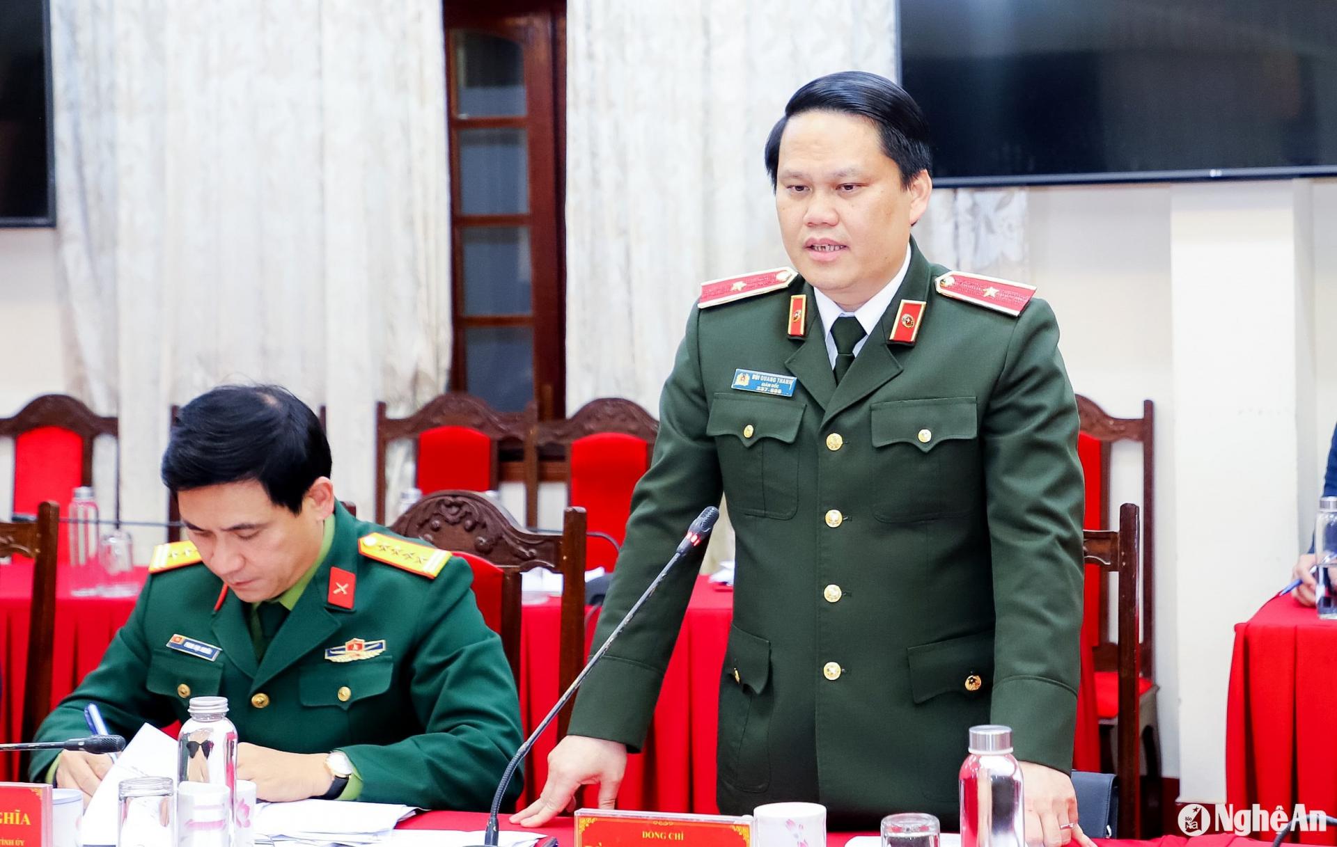 | Thiếu tướng Bùi Quang Thanh - Giám đốc Công an tỉnh phát biểu tại phiên họp. |