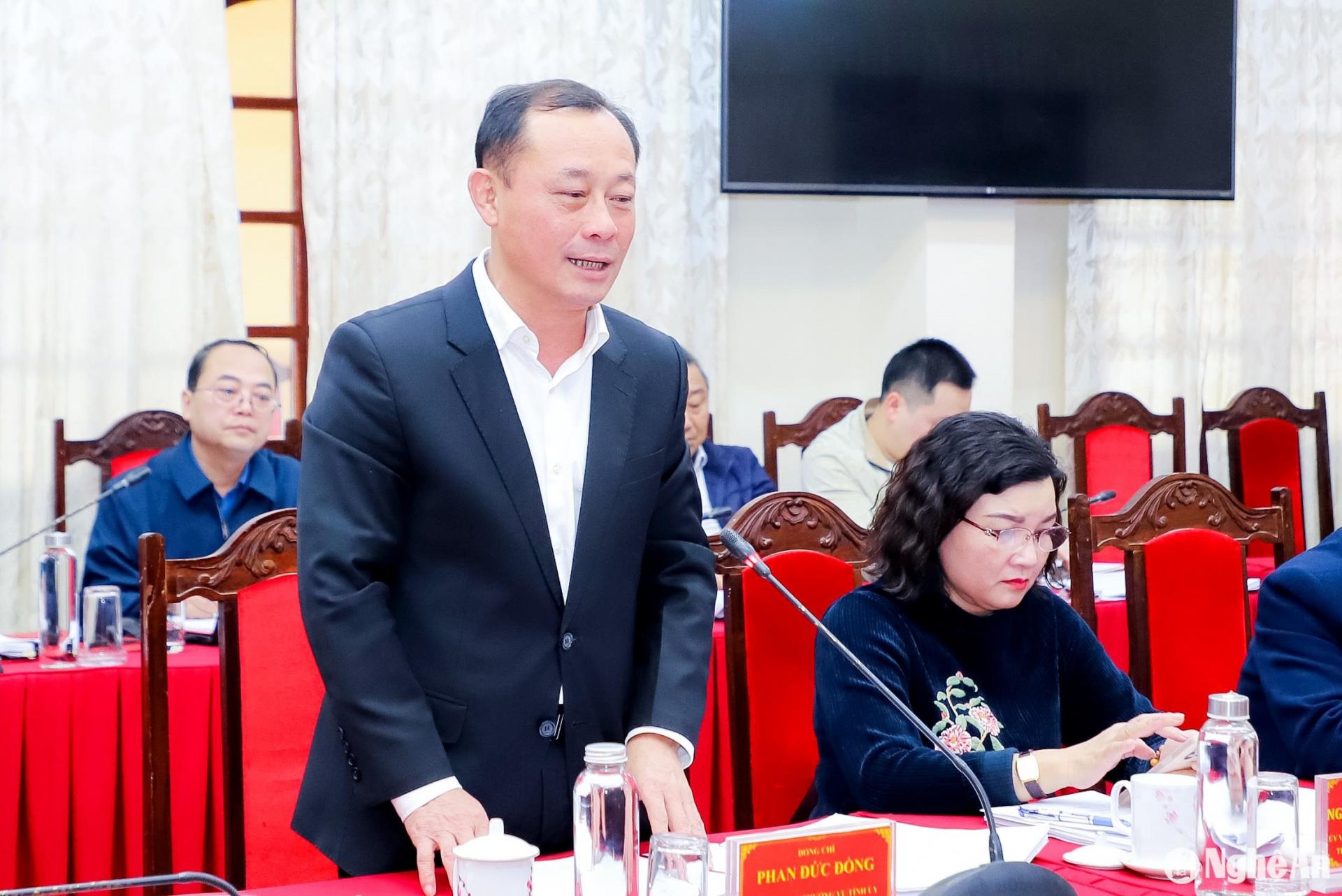 | Bí thư Thành ủy Vinh Phan Đức Đồng phát biểu tại phiên họp. |