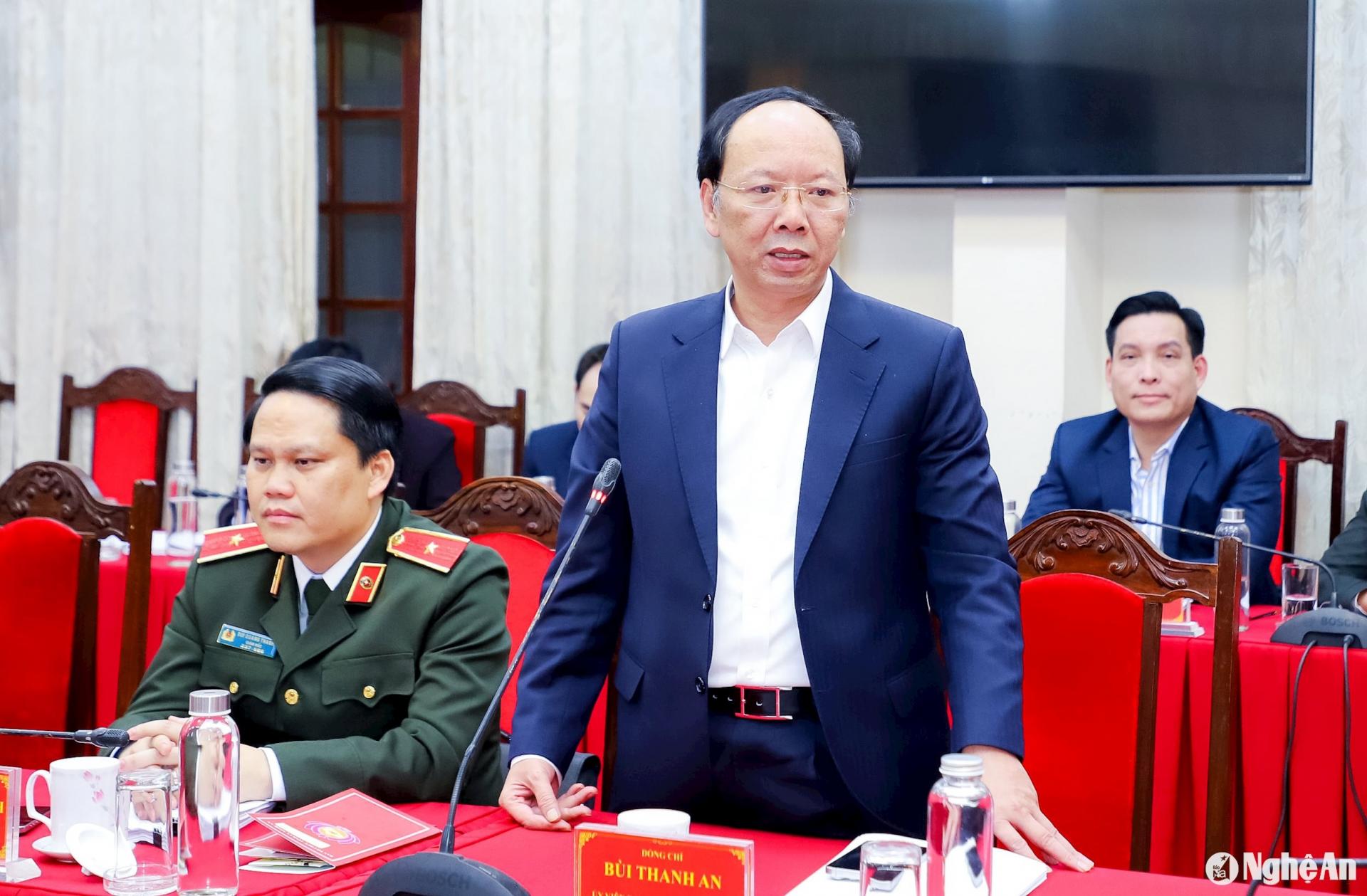 | Phó Chủ tịch UBND tỉnh Bùi Thanh An phát biểu tại phiên họp. |