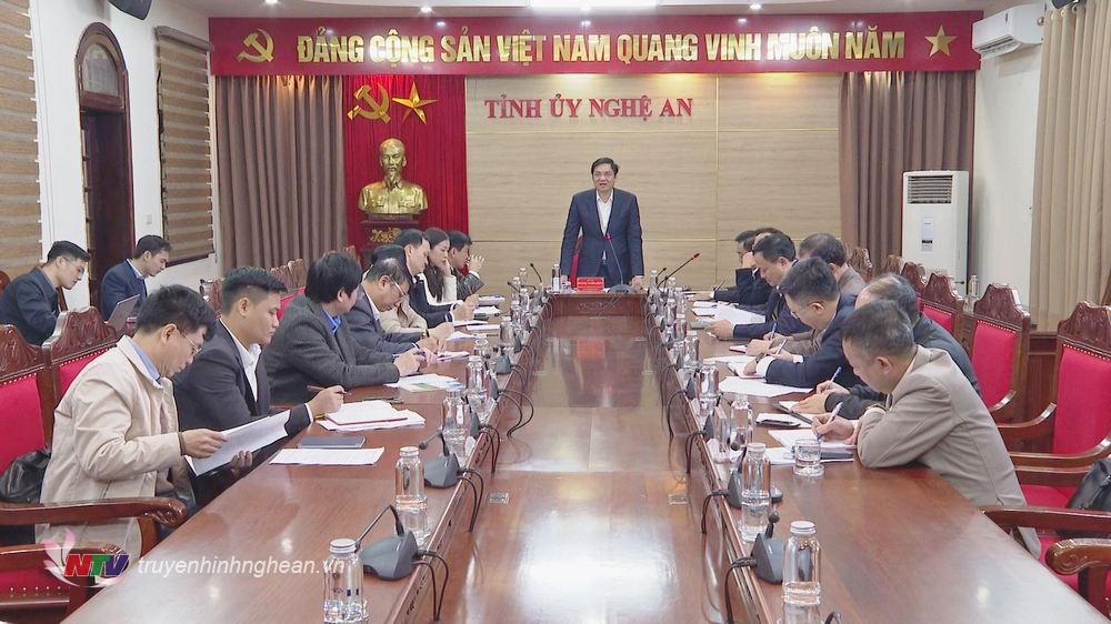 | Đồng chí Phan Đình Trạc - Ủy viên Bộ Chính trị, Bí thư Trung ương Đảng, Trưởng ban Nội chính Trung ương và các đồng chí lãnh đạo tỉnh Nghệ An dự chương trình |