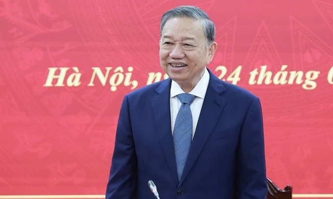 | Đồng chí Đại tướng Lương Tam Quang, Ủy viên Bộ Chính trị, Bộ trưởng Bộ Công an phát biểu chỉ đạo tại Hội nghị. |