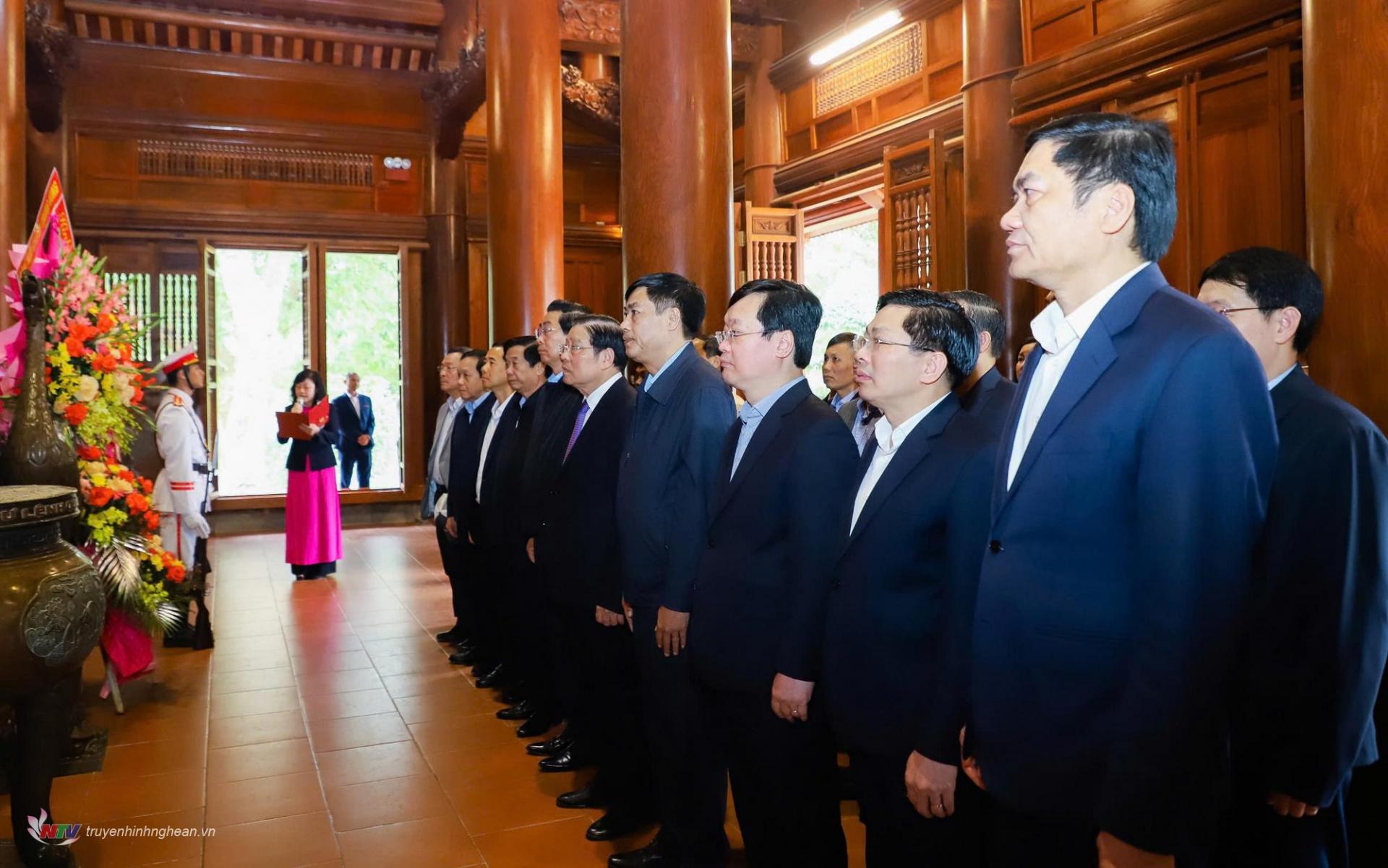 | Phó Bí thư Tỉnh ủy, Chủ tịch UBND tỉnh Lê Hồng Vinh cùng các đồng chí trong đoàn công tác tiến hành thả 500kg cá giống xuống sông Lam. |