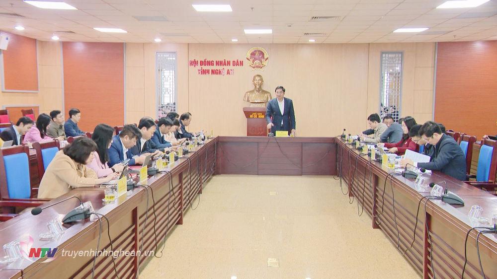 | Chủ tịch UBND tỉnh Lê Hồng Vinh phát biểu tại buổi làm việc. |