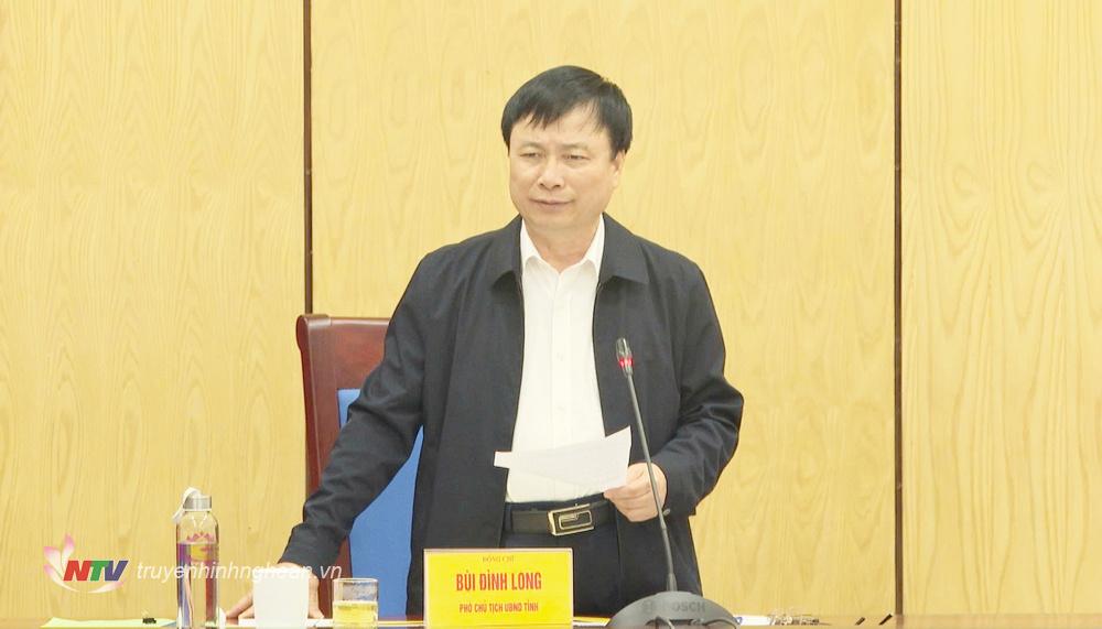 | Phó Chủ tịch UBND tỉnh Bùi Đình Long phát biểu kết luận cuộc họp. |