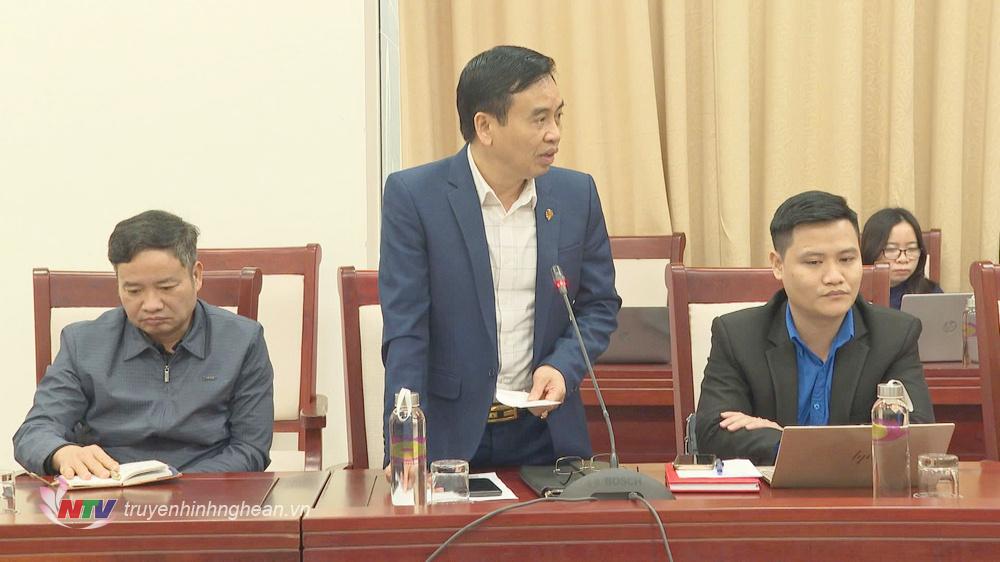 | Phó Giám đốc Sở Thông tin - Truyền thông Nguyễn Bá Hảo phát biểu tại cuộc họp. |