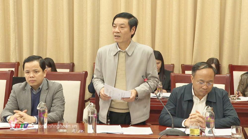| Đồng chí Thái Hồng Thanh, Phó Trưởng ban Thi đua - Khen thưởng tỉnh Nghệ An báo cáo dự thảo kế hoạch tổ chức Đại hội Thi đua yêu nước tỉnh Nghệ An giai đoạn 2020-2025. |