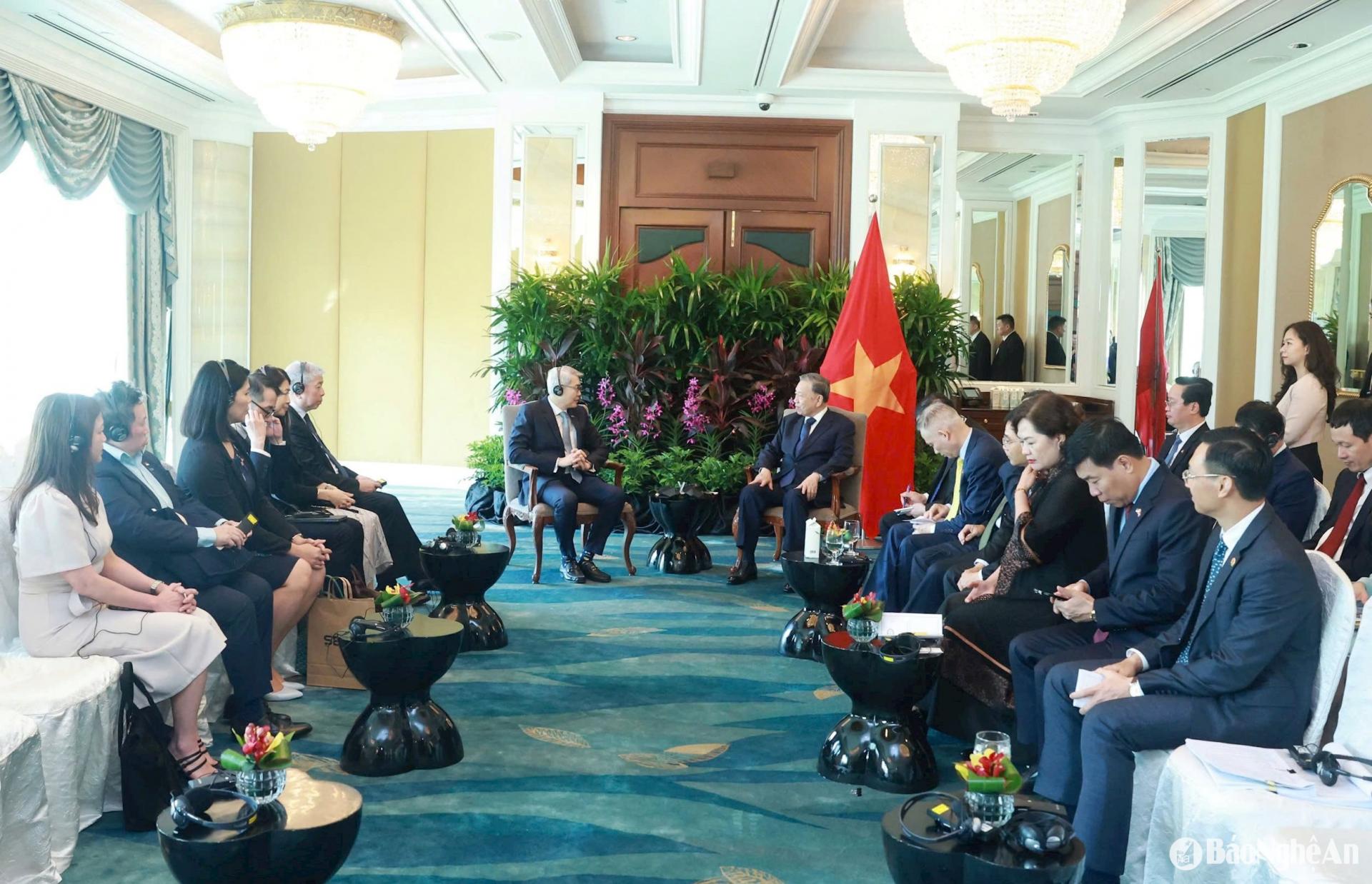 | Tổng Bí thư Tô Lâm và Thủ tướng Cộng hòa Singapore, Tổng Thư ký Đảng Hành động nhân dân Singapore (PAP) Lawrence Wong gặp hẹp. |