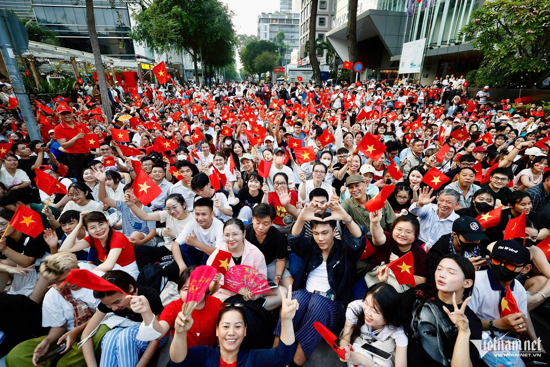 | Gia đình bà Phan Nữ Lệ Tuyết đến từ Bình Thuận đã có mặt tại phố đi bộ Nguyễn Huệ từ đêm trước để chờ xem tổng duyệt lễ diễu binh, diễu hành. Mặc dù trải qua một đêm nghỉ ngơi trên phố, bà và các thành viên trong gia đình vẫn giữ trọn vẹn sự hồ hởi, tranh thủ ghi lại những khoảnh khắc đáng nhớ trước giờ sự kiện trọng đại diễn ra. |