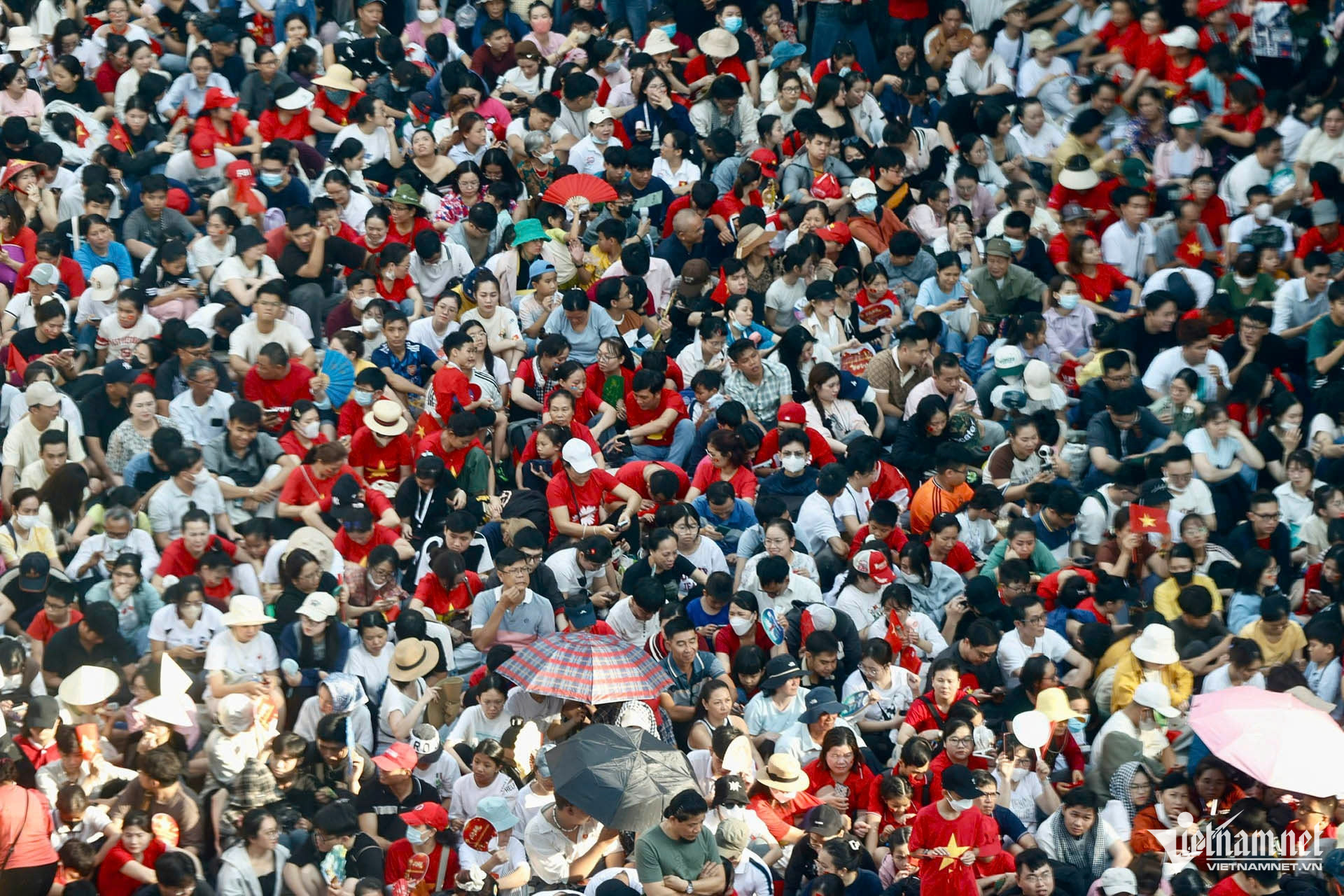 | Người dân đổ về hai bên đường Lê Lợi, an ninh nơi đây cũng được thắt chặt. |