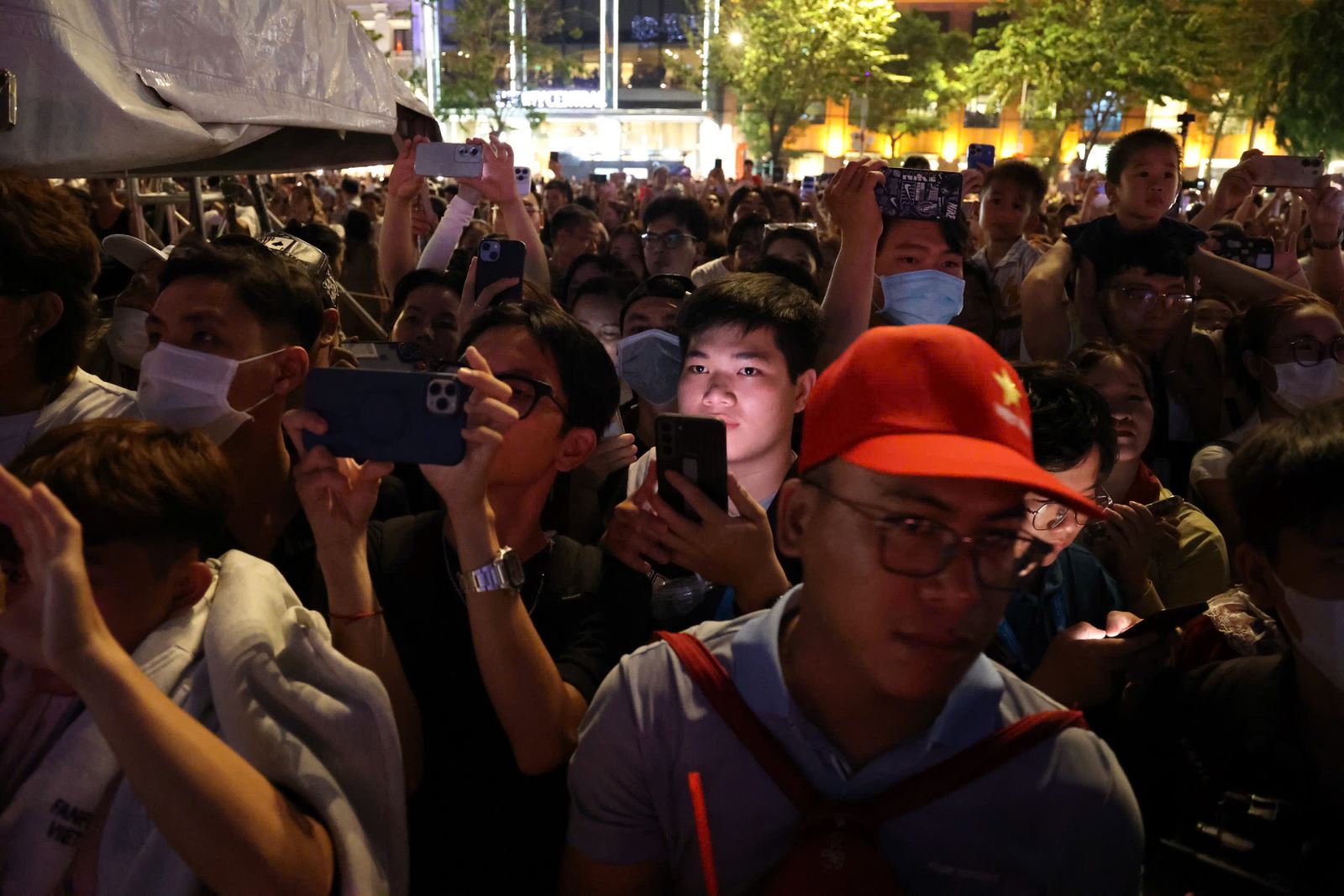| Đông đảo người dân và du khách theo dõi chương trình trình diễn của 10.500 drone. |