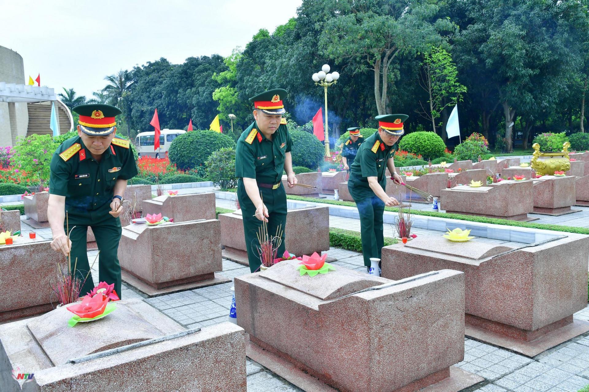 | Đoàn đại biểu Bộ Chỉ huy Quân sự tỉnh thắp hương tại phần mộ các anh hùng liệt sĩ. |