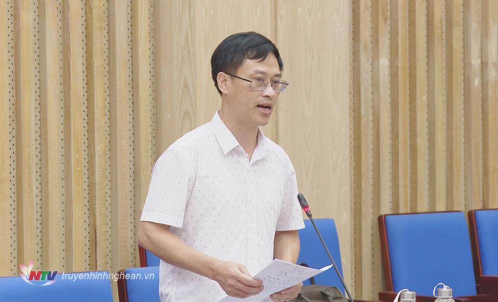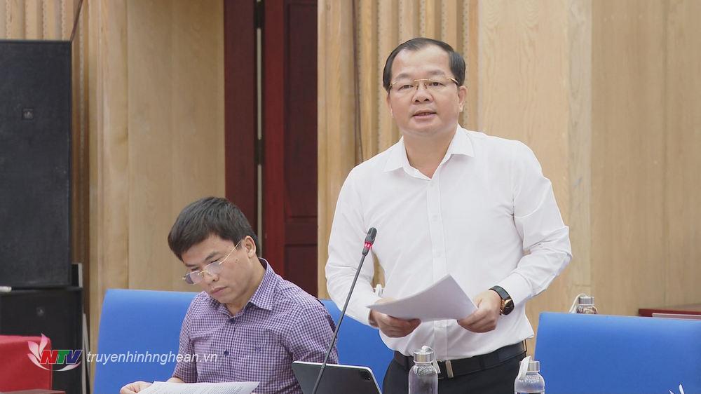 | Phó Giám đốc Sở Xây dựng Nguyễn Đức An báo cáo tình hình triển khai các dự án đầu tư trọng điểm trên địa bàn tỉnh. |