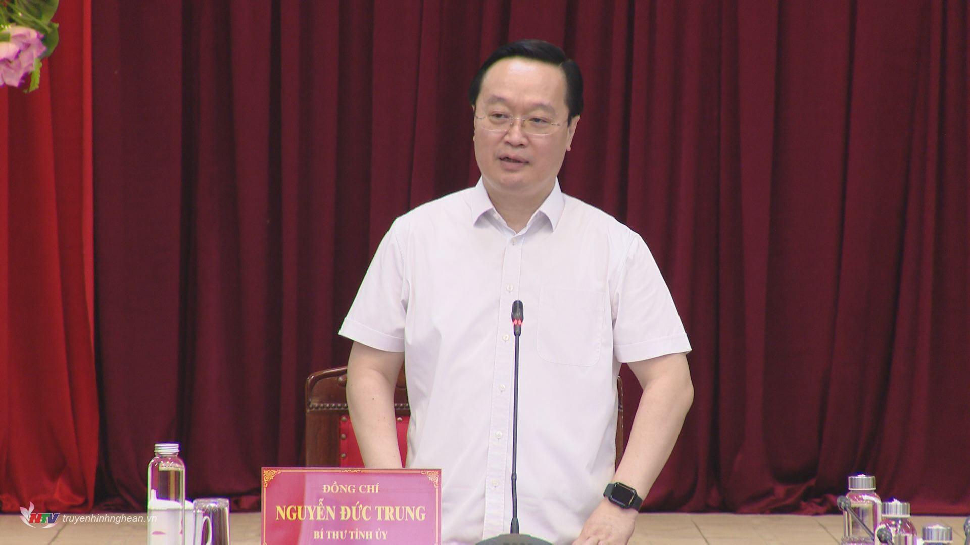 | Bí thư Tỉnh uỷ, Trưởng BCĐ tỉnh Nguyễn Đức Trung phát biểu kết luận hội nghị. |