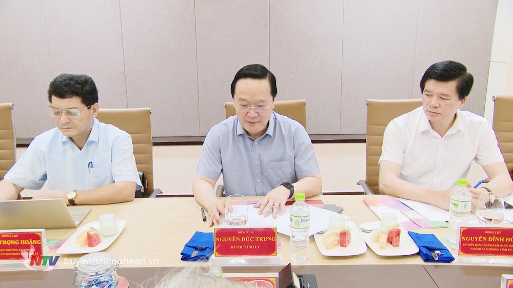 | Đồng chí Nguyễn Đức Trung - Bí thư Tỉnh uỷ phát biểu tại buổi làm việc. |