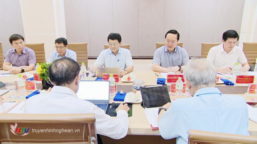 | Thành viên Tổ Biên tập Tiểu ban KTXH văn kiện Đại hội XIV của Đảng góp ý dự thảo Báo cáo Chính trị tỉnh Nghệ An. |