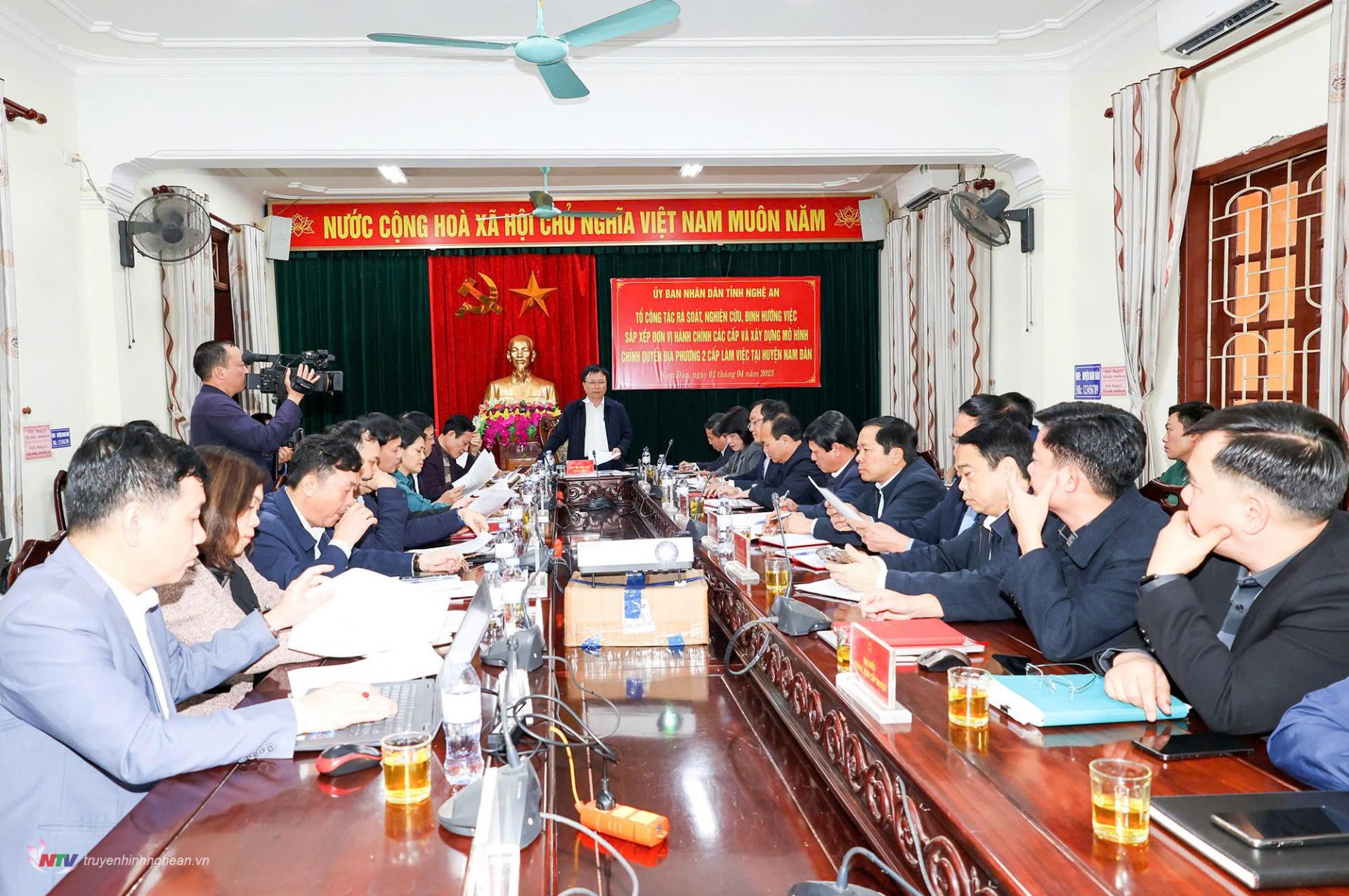 | Toàn cảnh buổi làm việc tại Nghĩa Đàn. Ảnh BNA |