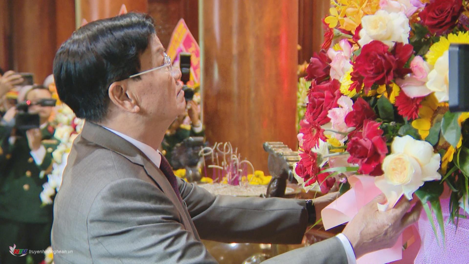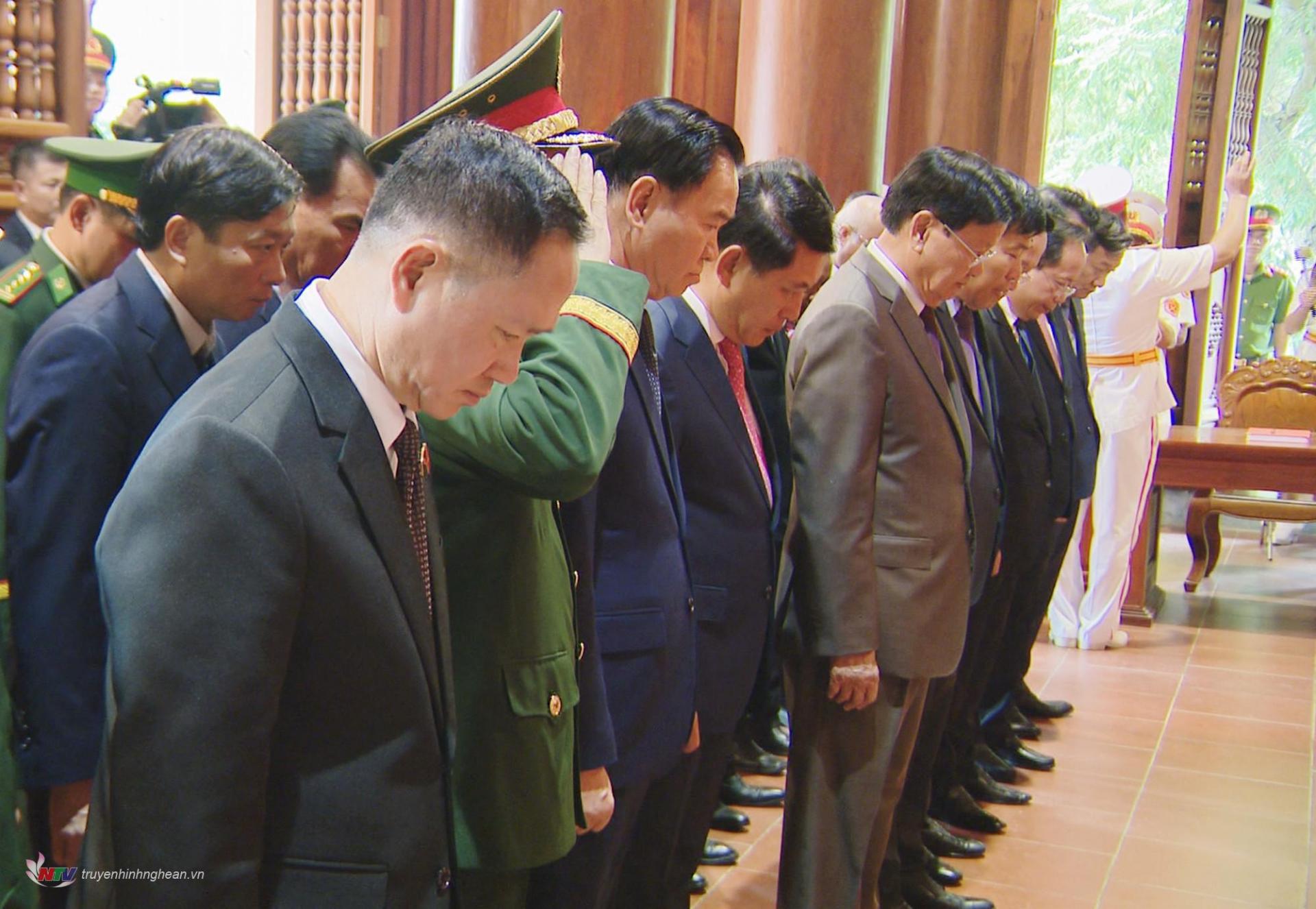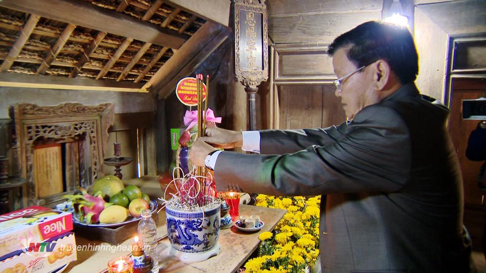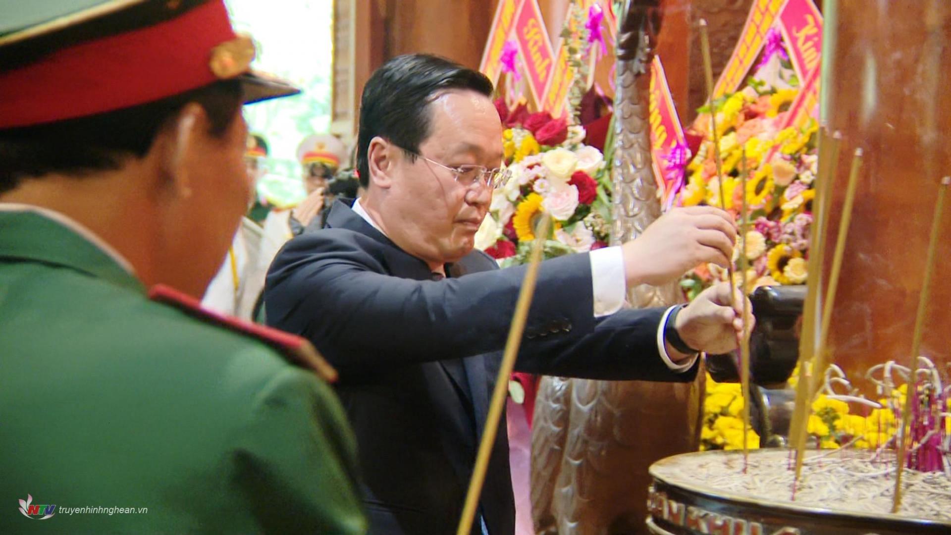 | Bí thư Tỉnh uỷ Nghệ An Nguyễn Đức Trung dâng hương tưởng niệm. |