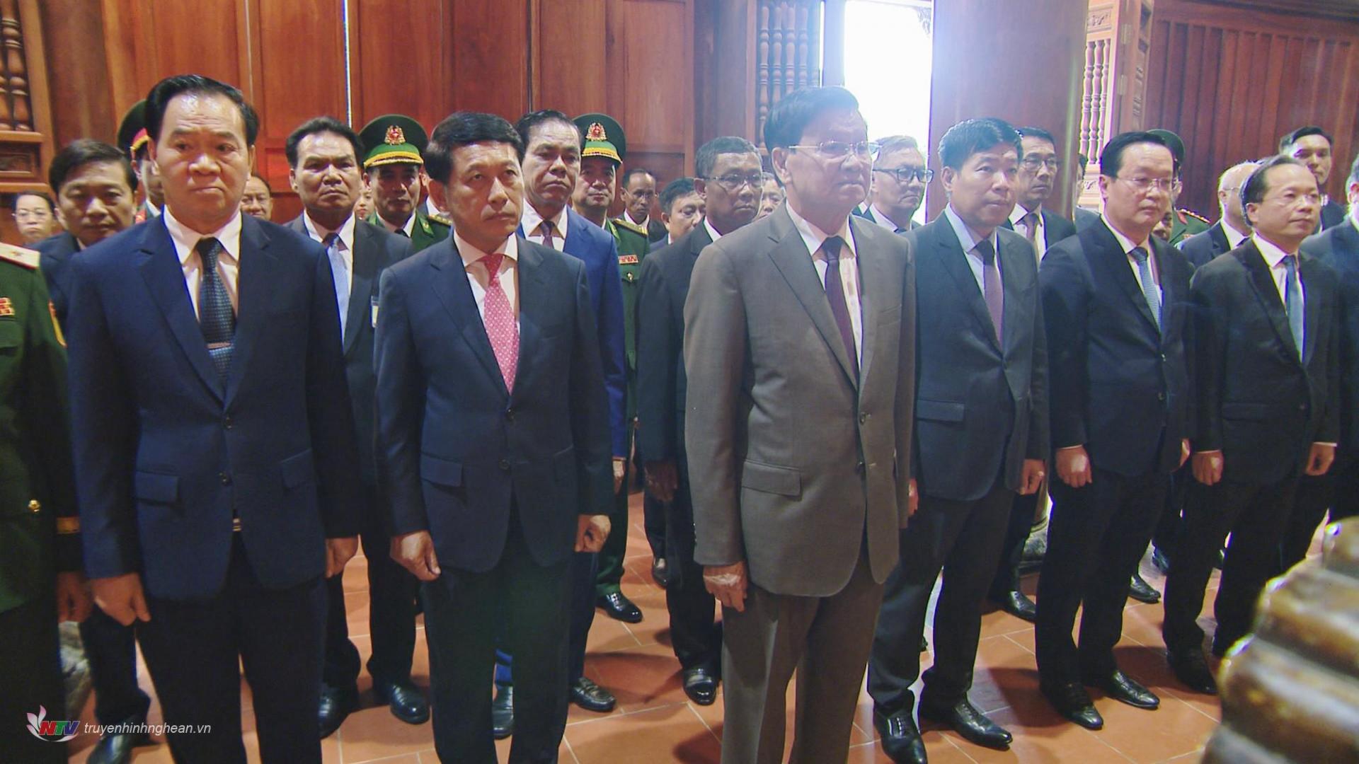 Tổng Bí thư Đảng Nhân dân Cách mạng Lào, Chủ tịch nước Lào cùng đoàn đại biểu cấp cao Đảng và Nhà nước Lào và Việt Nam bày tỏ lòng kính trọng sâu sắc đối với Chủ tịch Hồ Chí Minh - Anh hùng giải phóng dân tộc Việt Nam, danh nhân văn hóa kiệt xuất, nhà hoạt động lỗi lạc của phong trào cộng sản và công nhân Quốc tế.