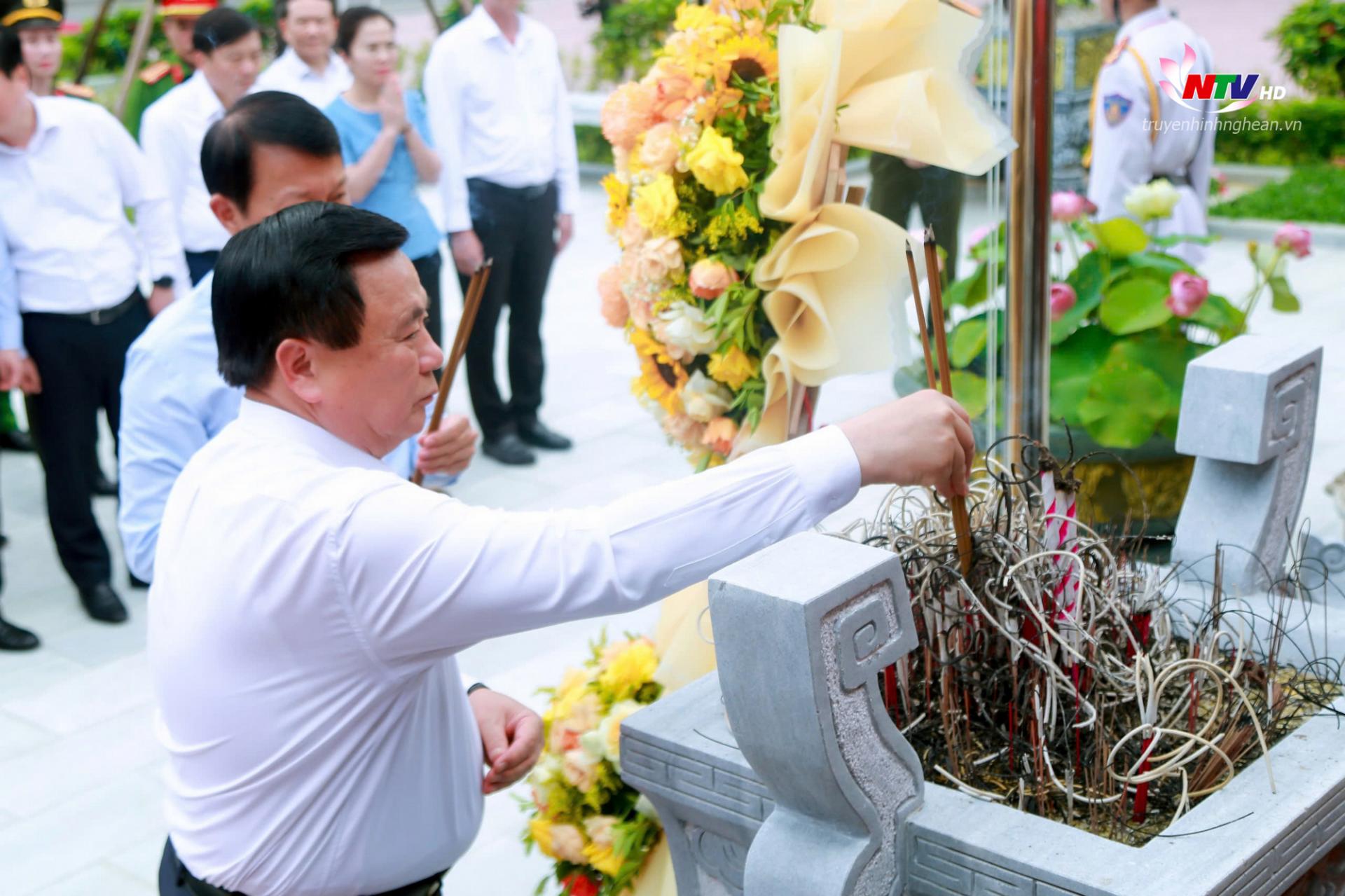| Các đại biểu thành kính dâng hoa, dâng hương tưởng niệm Chủ tịch Hồ Chí Minh. |
