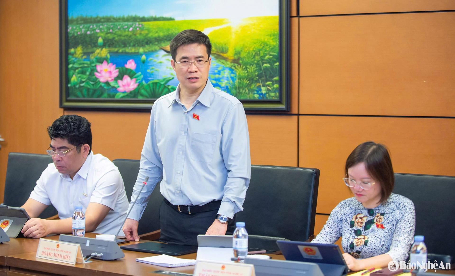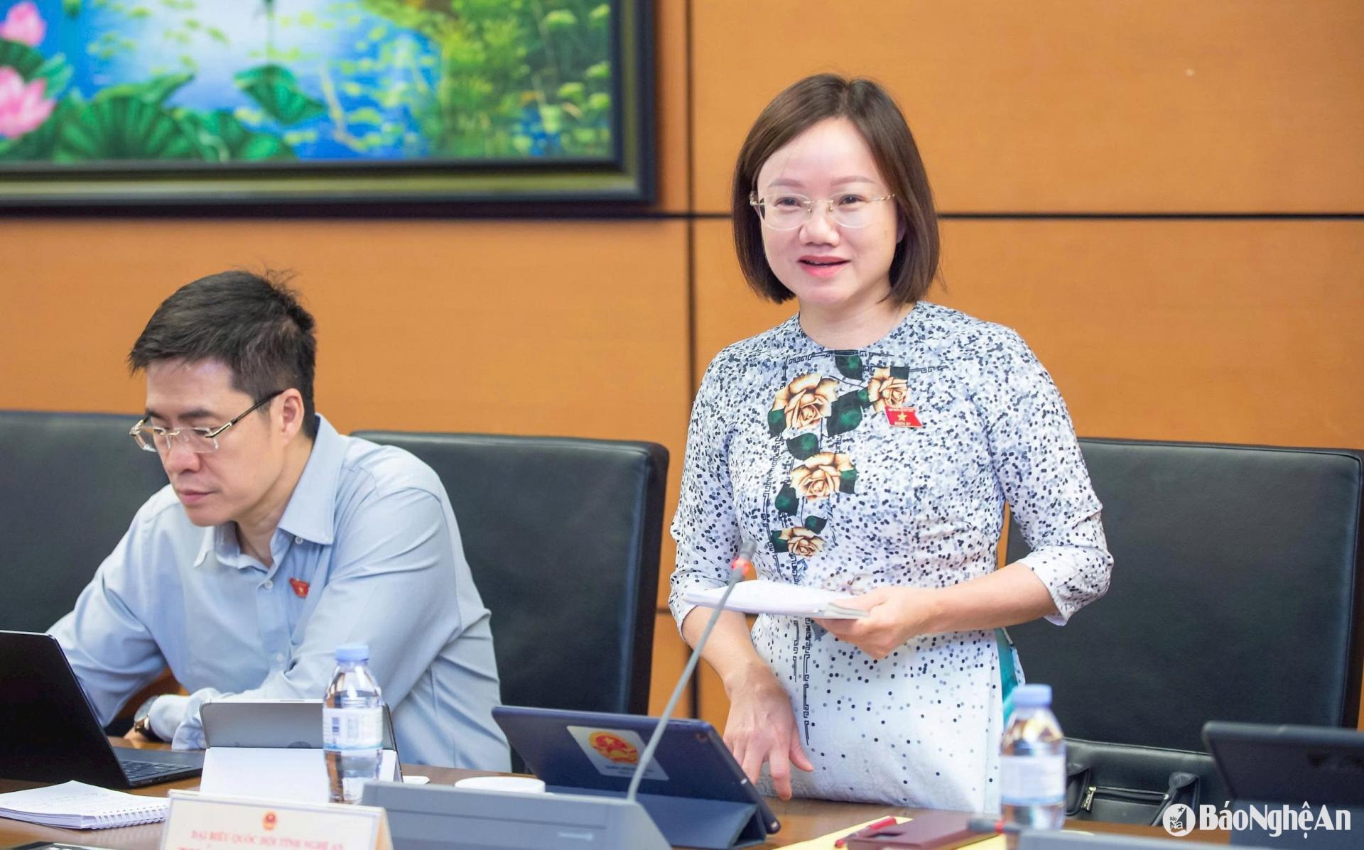 | Đại biểu Thái Thị An Chung - Ủy viên Ban Chấp hành Đảng bộ tỉnh, Phó Trưởng đoàn chuyên trách Đoàn ĐBQH tỉnh Nghệ An phát biểu thảo luận. |